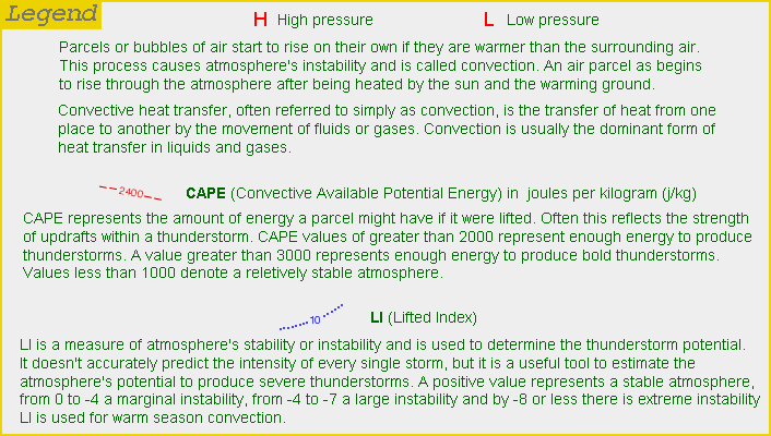 Surface Analysis, CAPE (Convective Available Potential Energy) and LI (Lifted Index) |