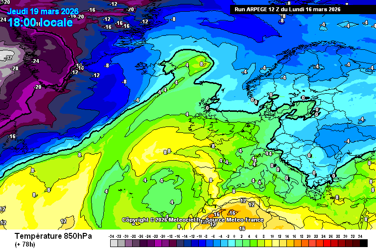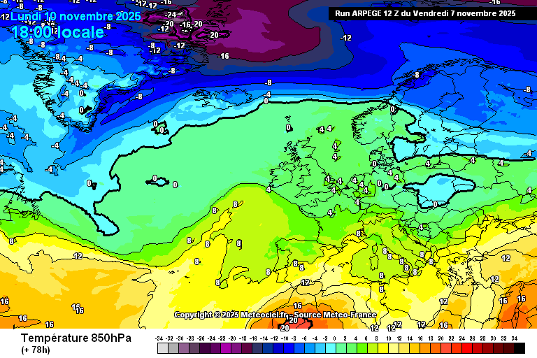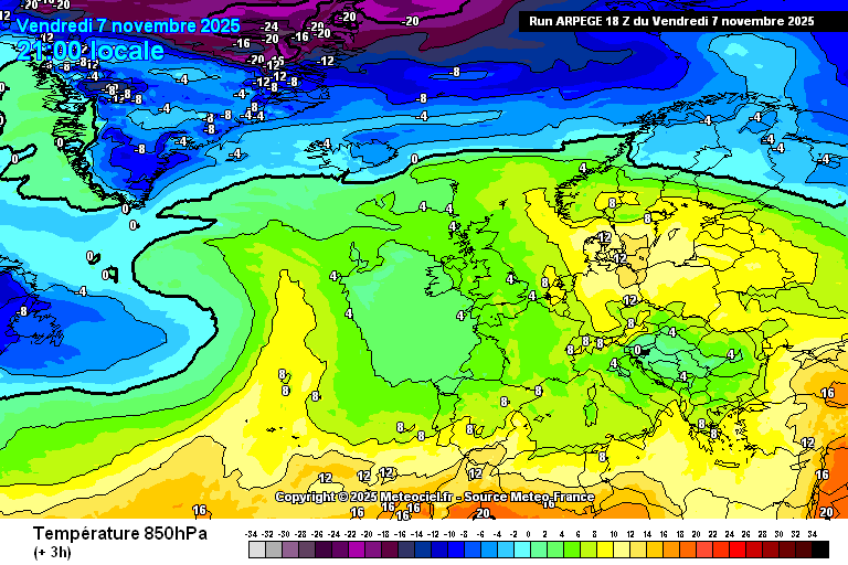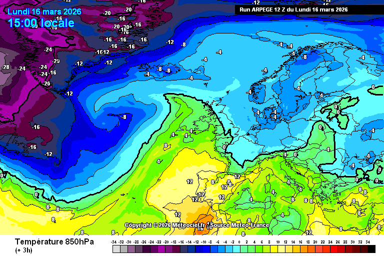 Θερμοκρασία στα 850 hPa στην Ευρώπη