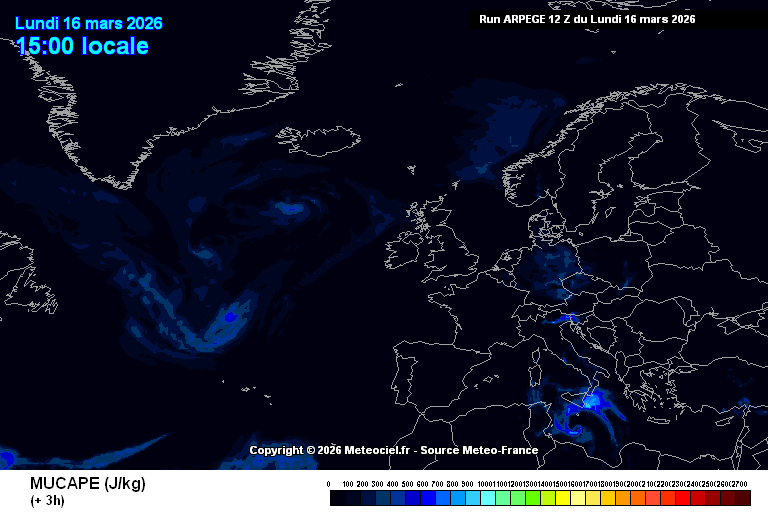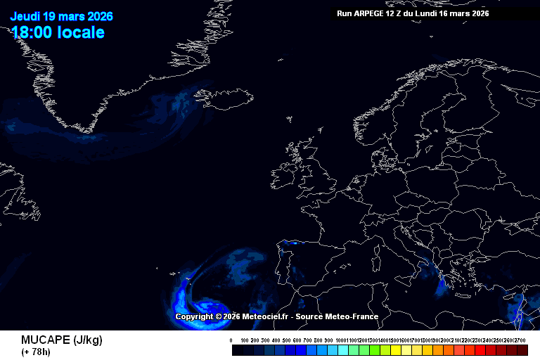 Περισσότερο Ασταθής (MU) Διαθέσιμη Δυναμική Ενεργεία Συναγωγής (CAPE) στην Ευρώπη