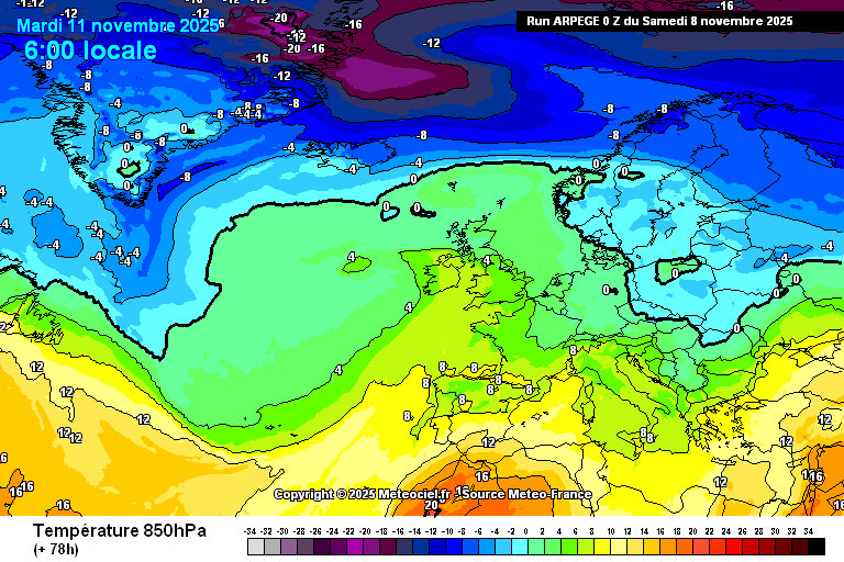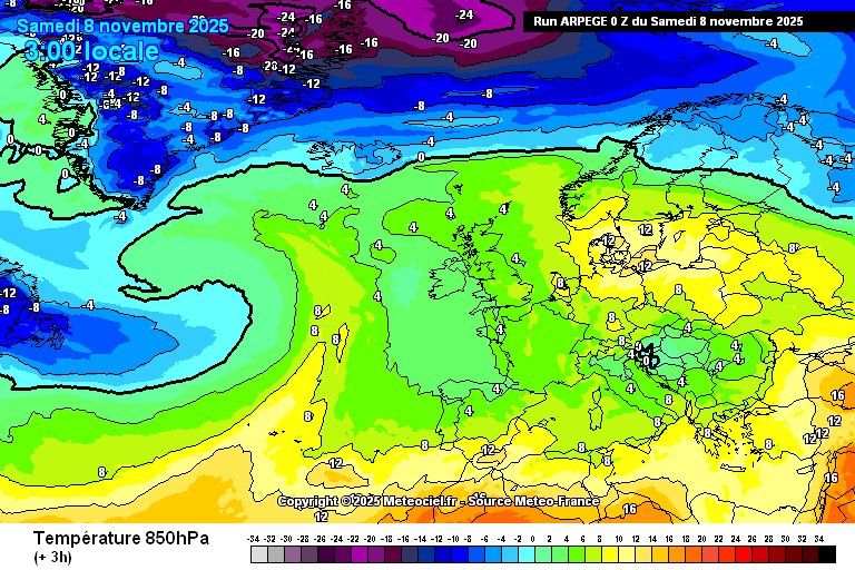 Θερμοκρασία στα 850 hPa στην Ευρώπη