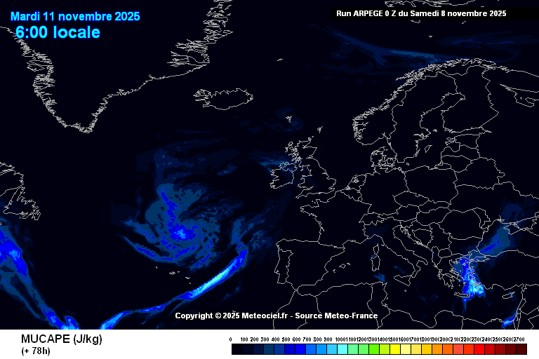 Περισσότερο Ασταθής (MU) Διαθέσιμη Δυναμική Ενεργεία Συναγωγής (CAPE) στην Ευρώπη