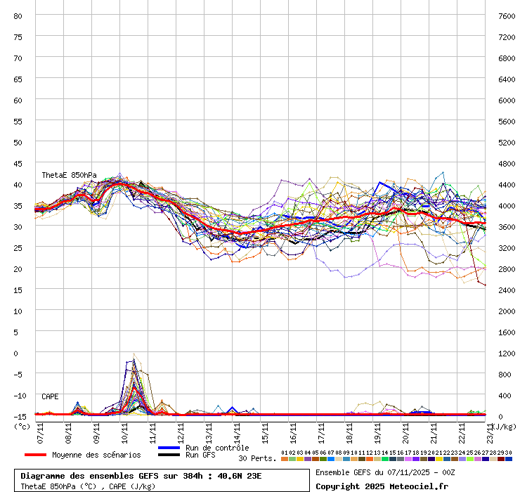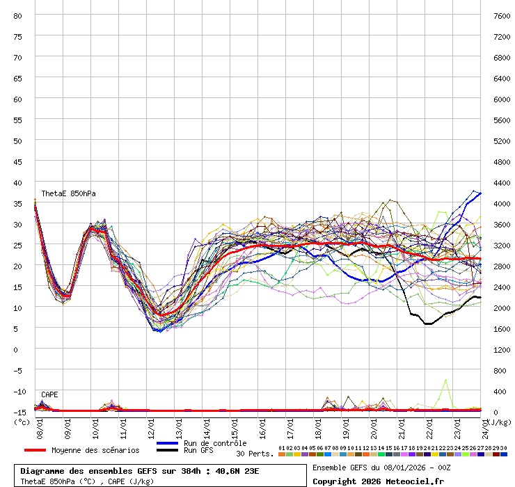 Θερμοκρασία(Θ) στα 2 μέτρα, στα 850 hPa, στα 500 hPa, Υετός(Υ), Πίεση(Πσ) (επιφάνεια θαλάσσης), Theta-E(tE) στα 850 hPa & CAPE(C) |