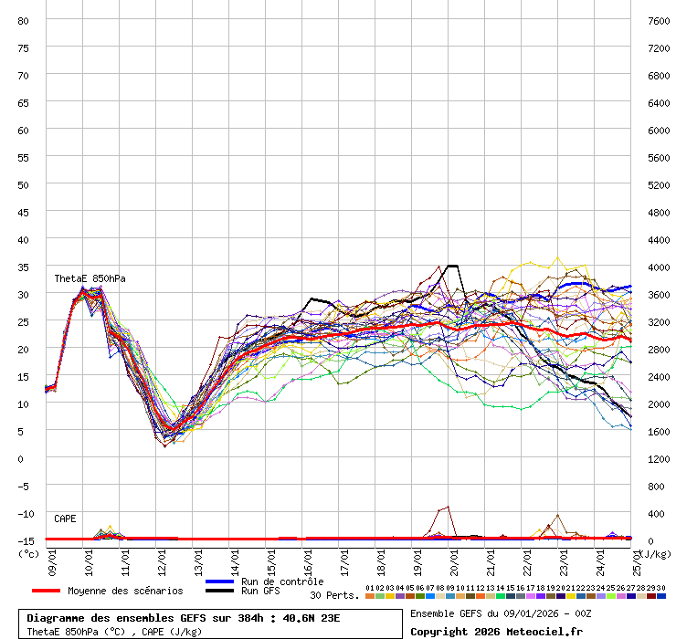 Θερμοκρασία(Θ) στα 2 μέτρα, στα 850 hPa, στα 500 hPa, Υετός(Υ), Πίεση(Πσ) (επιφάνεια θαλάσσης), Theta-E(tE) στα 850 hPa & CAPE(C) |