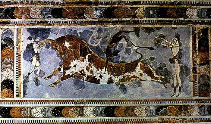 Ταυροκαθάψια σε τοιχογραφία από το παλάτι της Κνωσού, Κρήτη