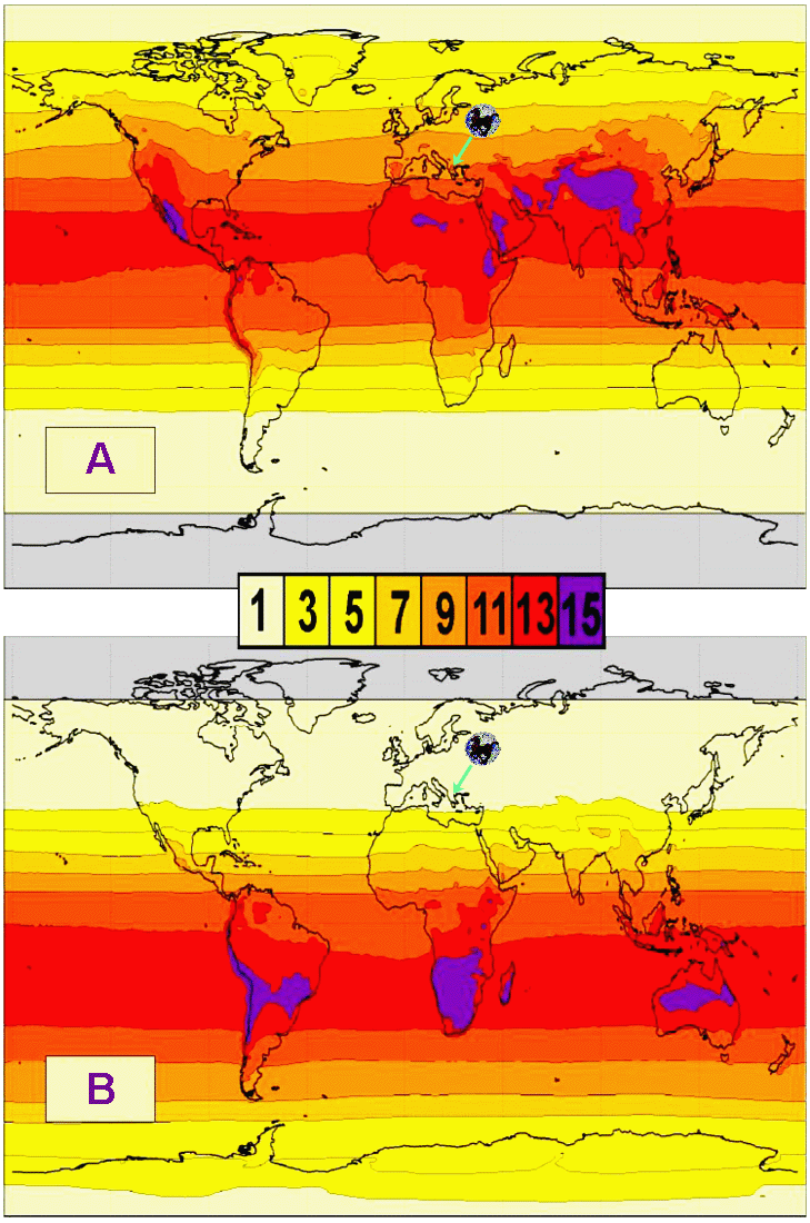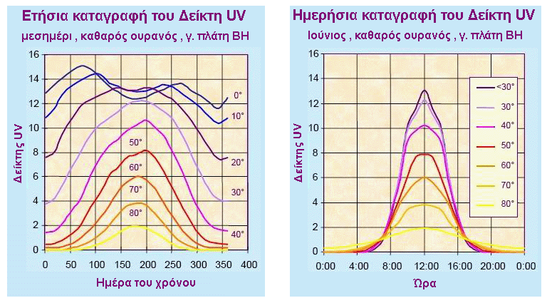 Ο δείκτης UV    τον Ιούλιο(Α)    και τον Ιανουάριο(Β)